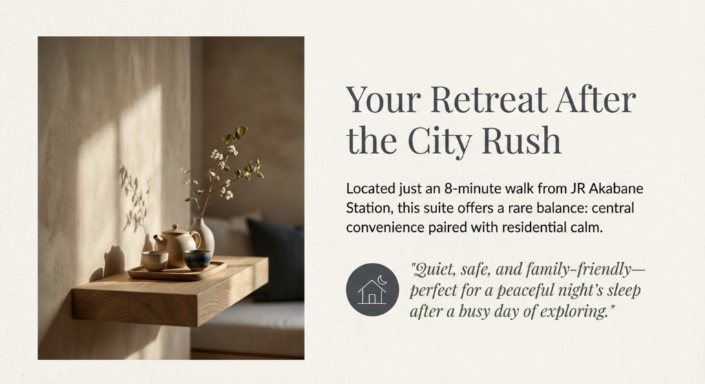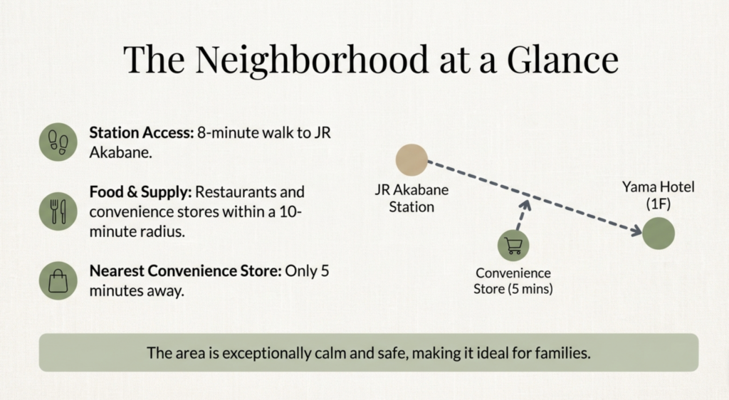 Our property is conveniently located just an 8-minute walk from JR Akabane Station.