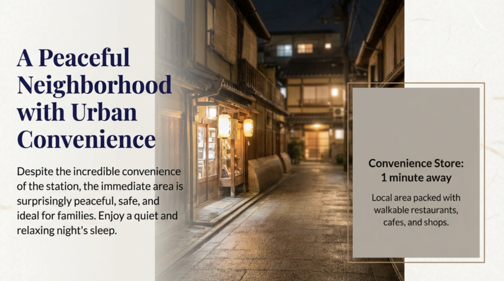 Despite its incredible convenience, the area is surprisingly peaceful, safe, and ideal for families with children.