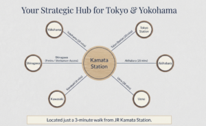 Kamata is a strategic transportation hub, offering seamless access to both central Tokyo and the Yokohama area.