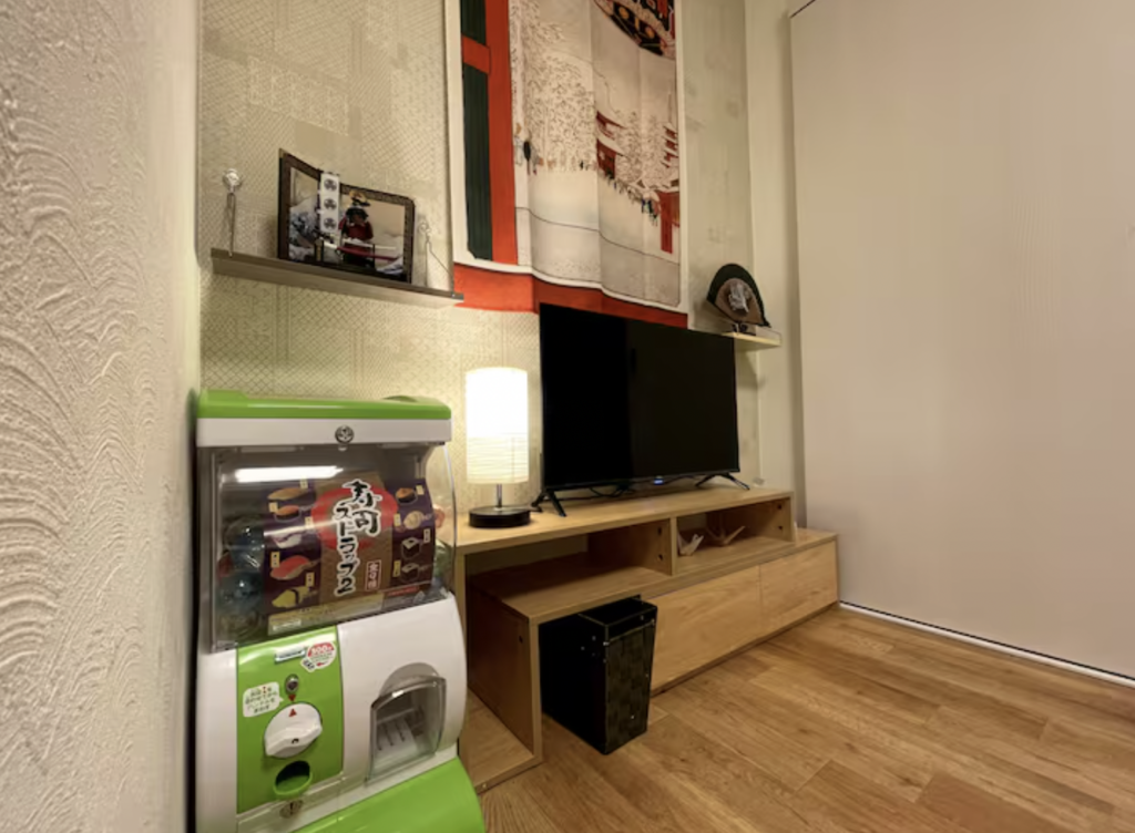 Bedroom: TV (with YouTube/Netflix), high-speed Wi-Fi, and a “Gashapon” capsule toy machine for a fun touch!